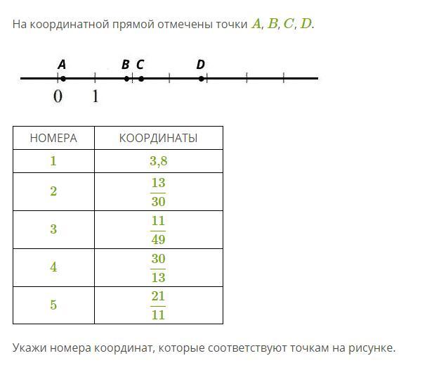 Укажи номера координат, которые соответствуют точкам на рисунке.