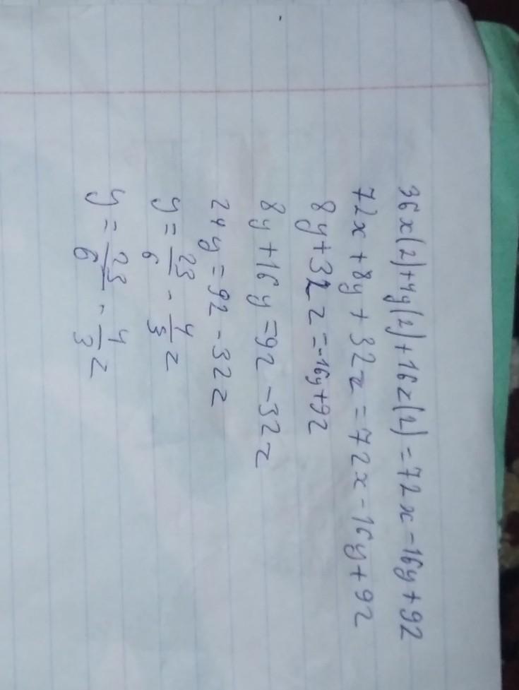 Найти объем эллипсоида 36x(2)+4y(2)+16z(2)=72x−16y+92.