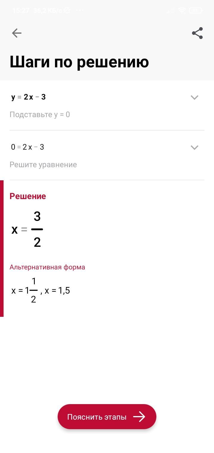 постройте график функции y =2x-3, найдите координаты точки пересечения с прямой с осью ординат