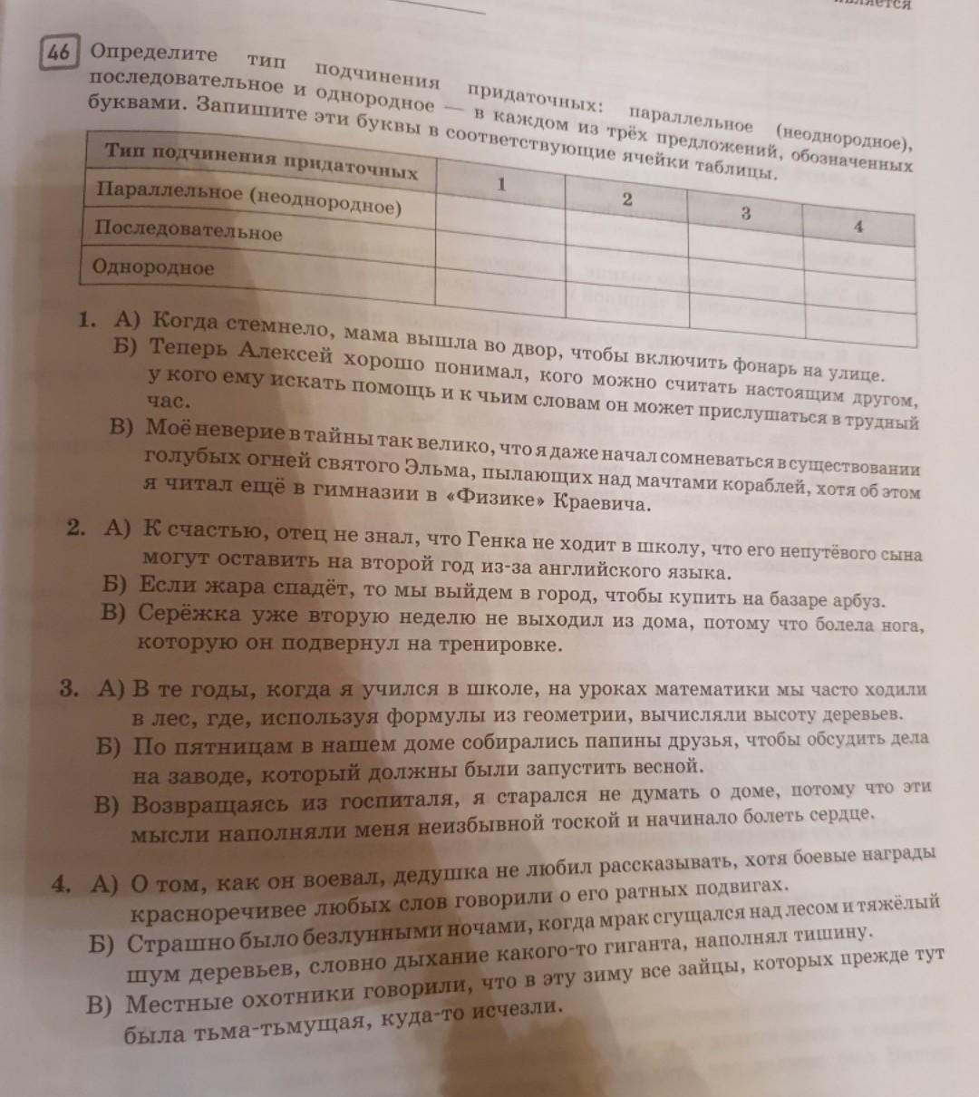 Однородное подчинение: 1. Б 2. А 3. В 4. Б
