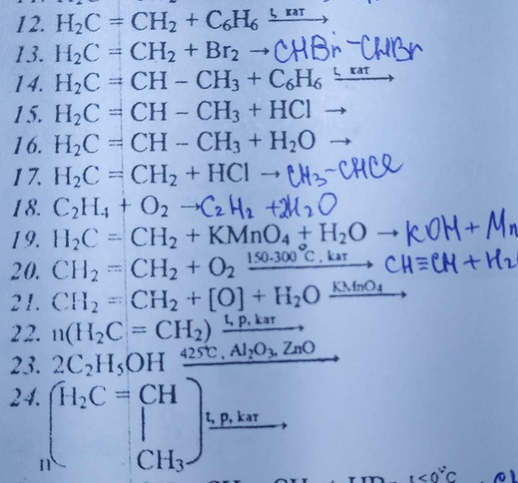 15. CH2=CH-CH3 + HCL = CH3-CH(CL)-CH3