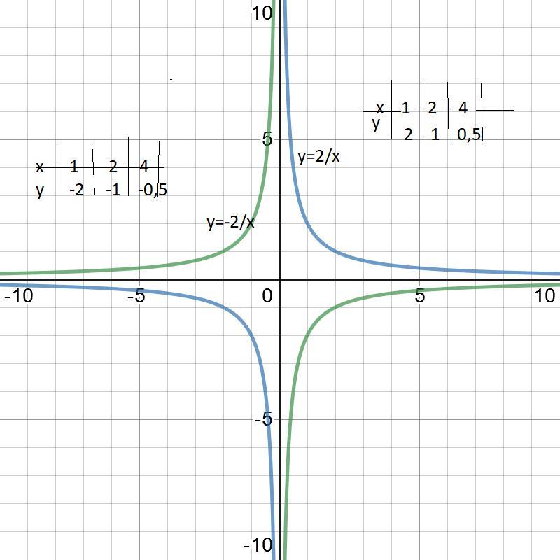 постройте в одной координатной плоскости графики функций у=2/х и у=-2/х Пж помогите срочно надо :(((((( дам 20 баллов