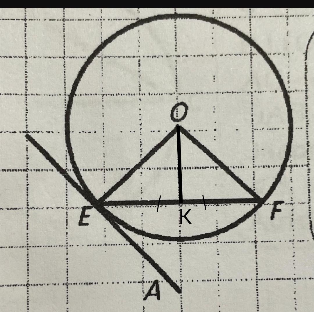 Дано: радиус 5 см, угол EOF=120 градусов. Найти: угол FEA, OEF, EF.