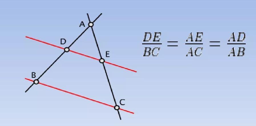 Согласно обобщенной теореме Фалеса, - параллельные прямые, пересекающие стороны угла, отсекают от его сторон пропорциональные отрезки (см.рис.)