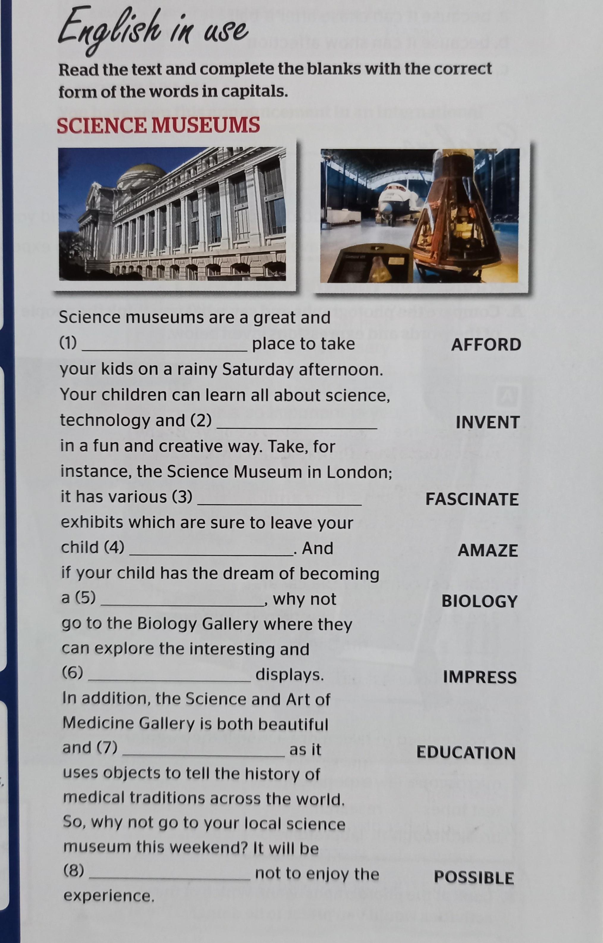 1 affordable 2 inventions 3 fascinating 4 amazed 5 biologist 6 impressive 7 educational 8 impossible