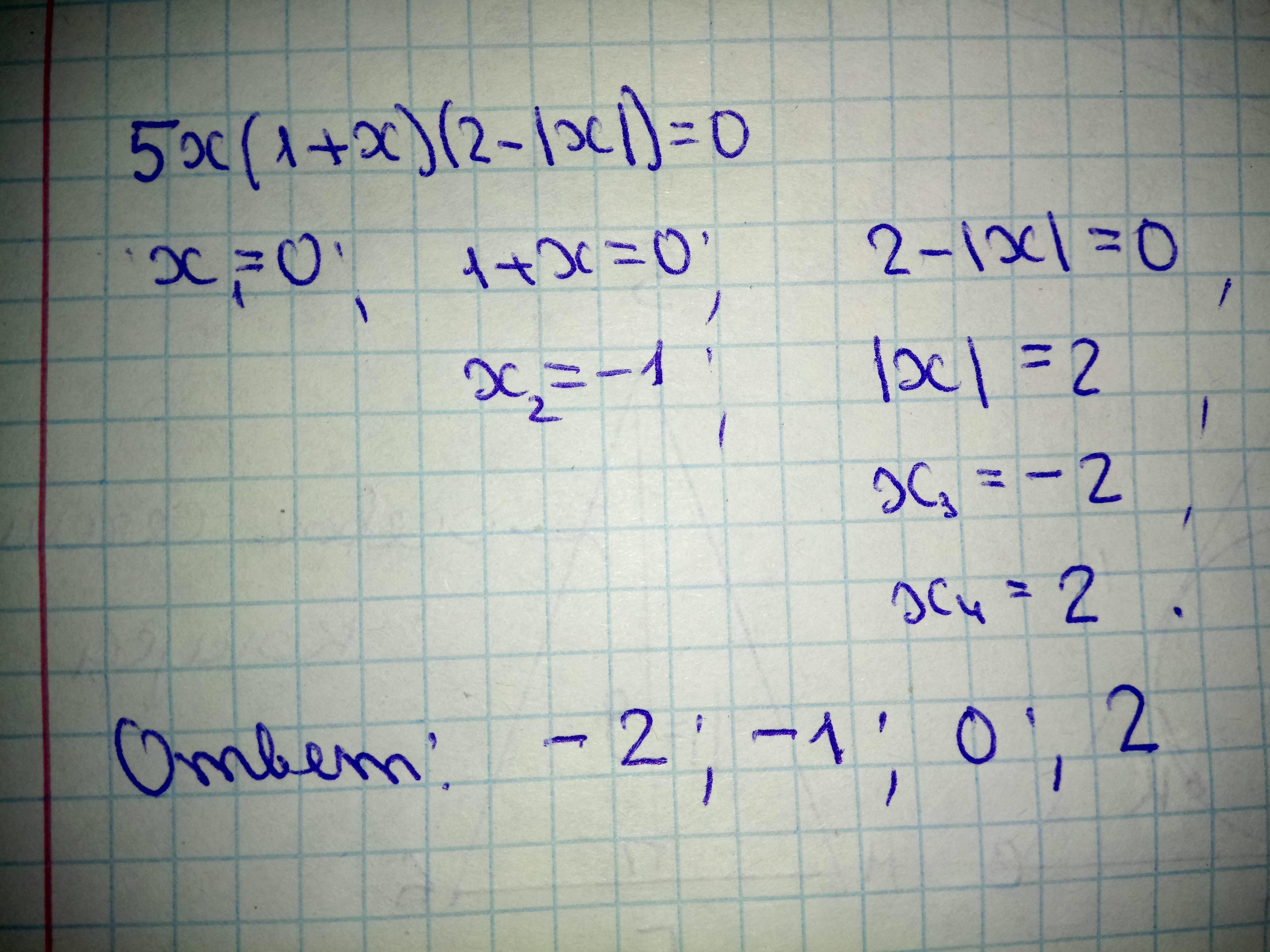 5x(1+x)(2-|x|)=0