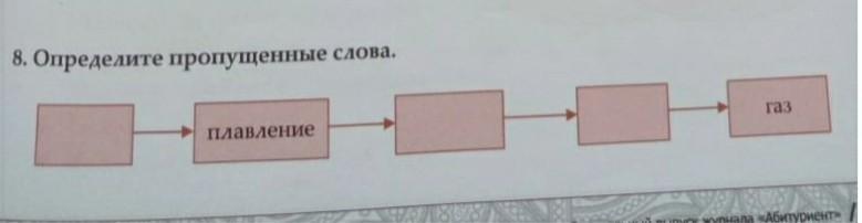 Твердое тело, плавление, кипение (жидкая фаза), испарение, газ.