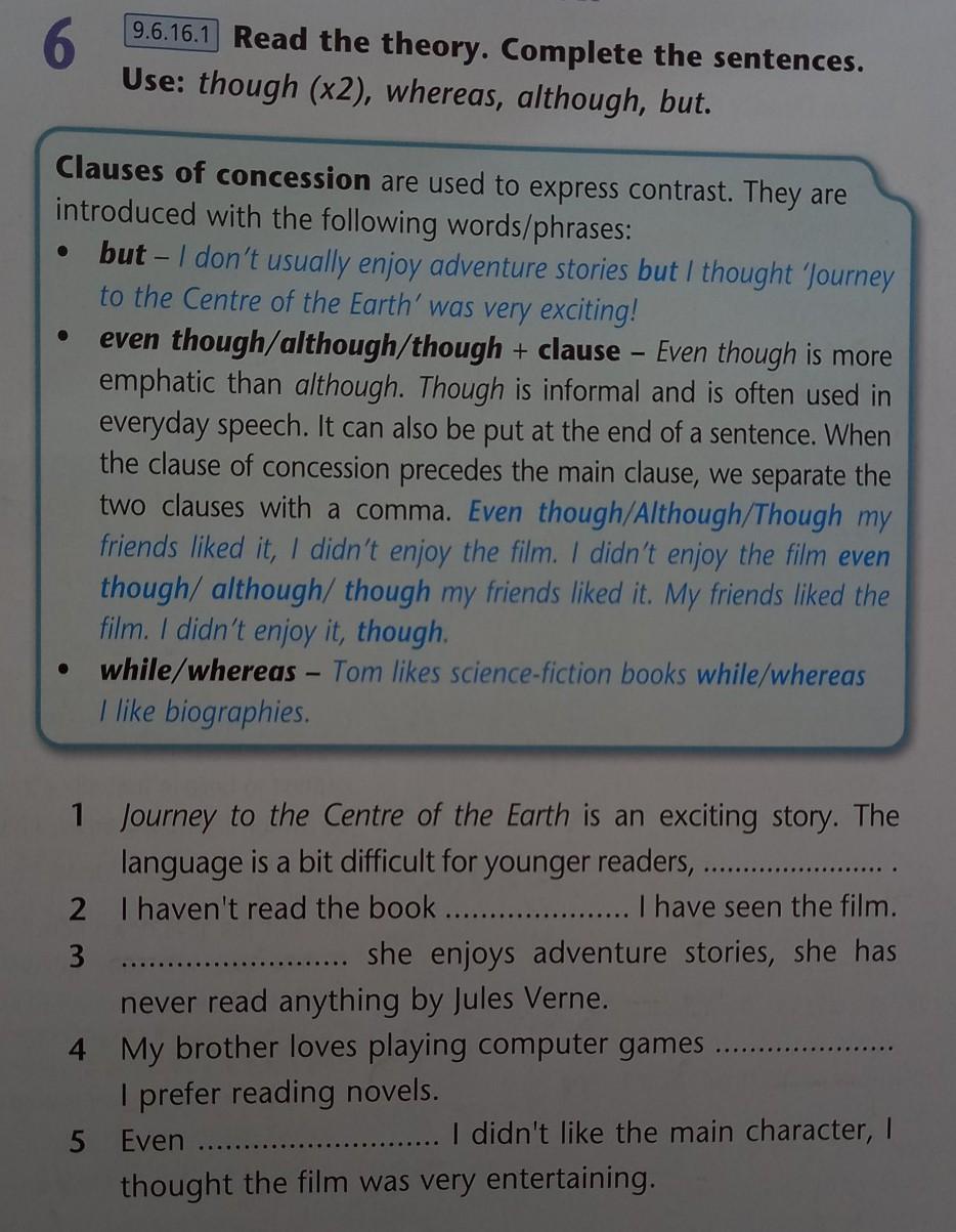 3. Although she enjoys adventure stories, she has never read anything by Jules Verne.
