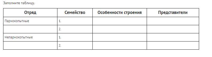 Семейства: лошадиных, носороговых и тапировых.