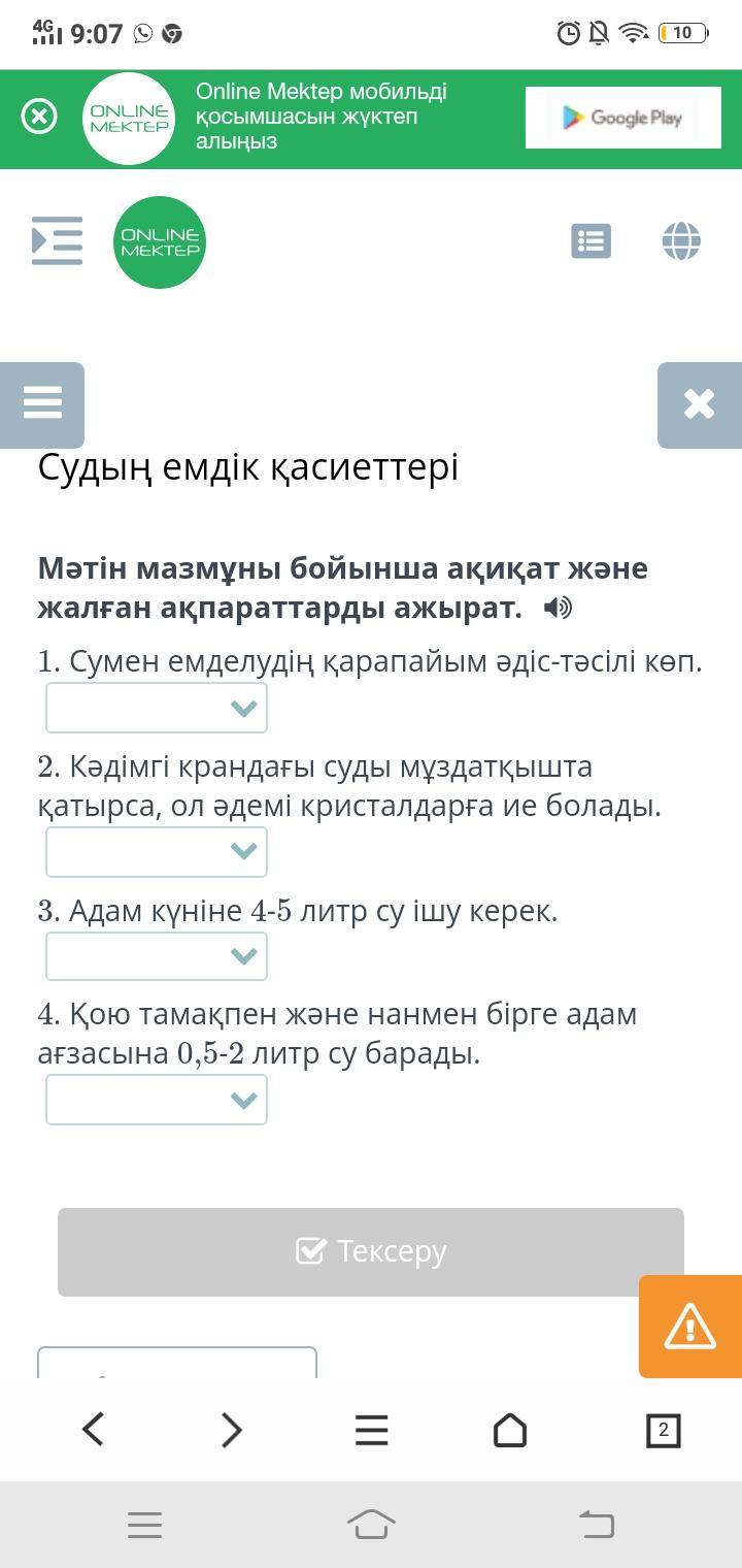 Судың емдік қасиеттері Мәтін мазмұны бойынша ақиқат және жалған ақпараттарды ажырат.