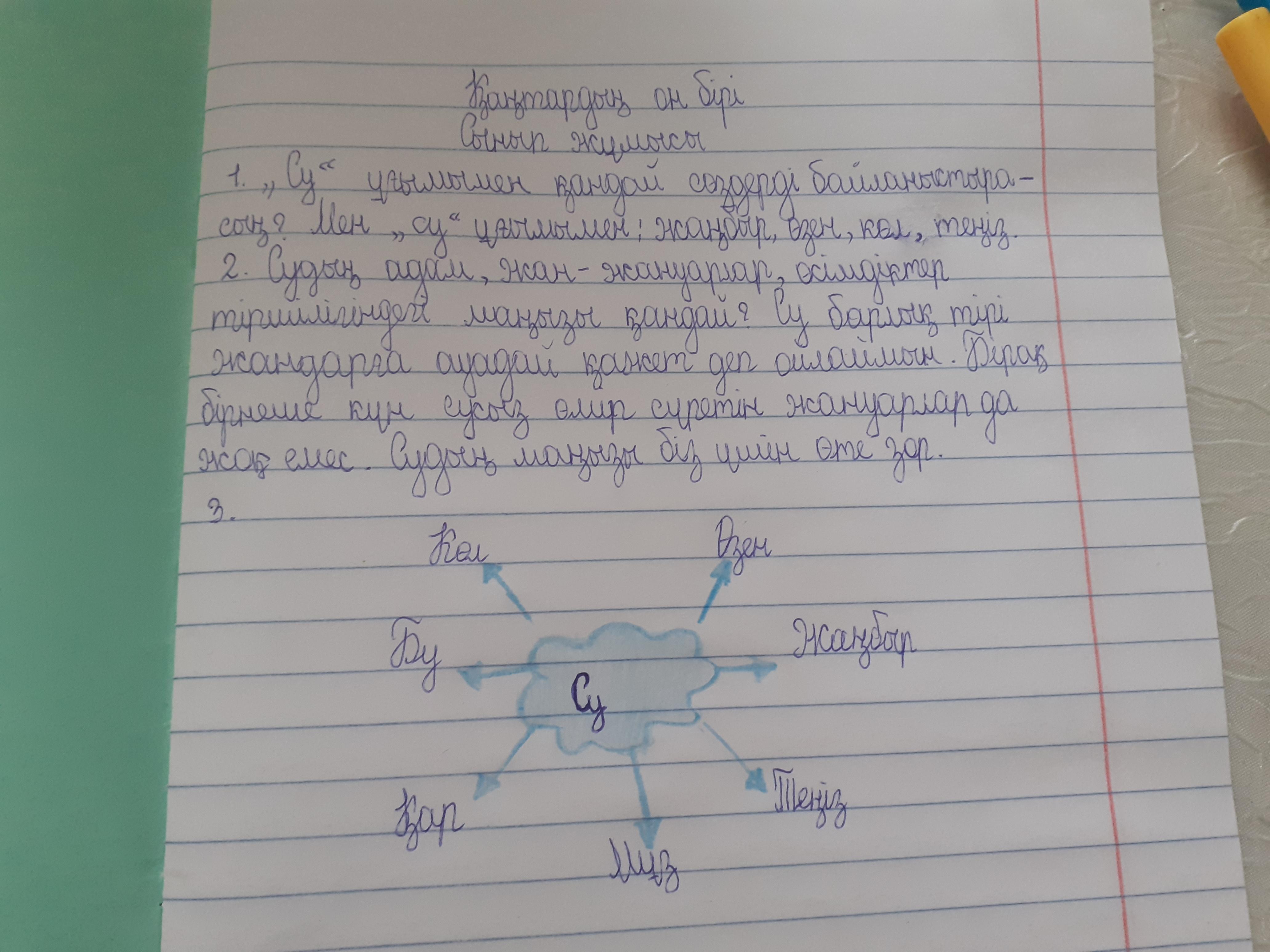 1. «Су» ұғымымен қандай сөздерді байланыстырасың?