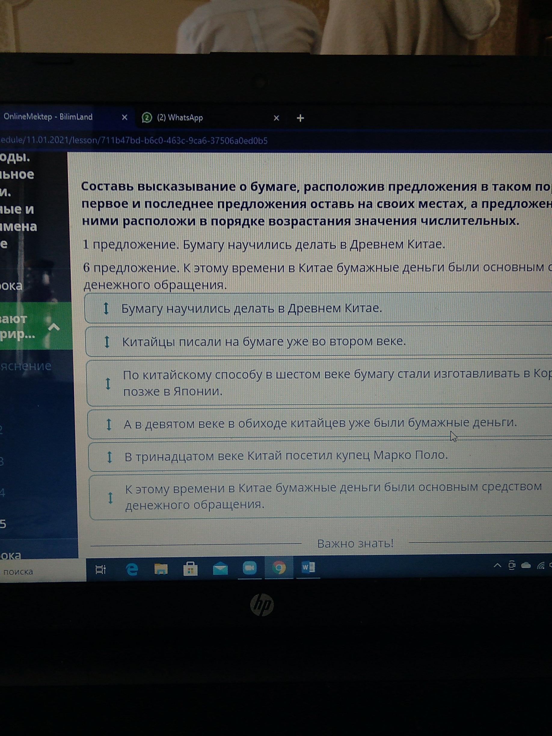 составь высказывание о бумаге, расположив предложения в таком порядке: первое и последнее предложения оставь на своих местах, а предложения между ними расположи в порядке возрастания значения числительных.
