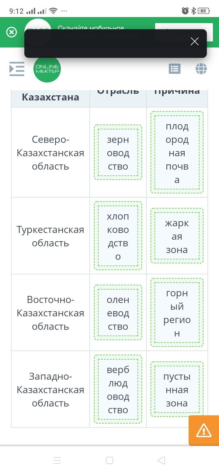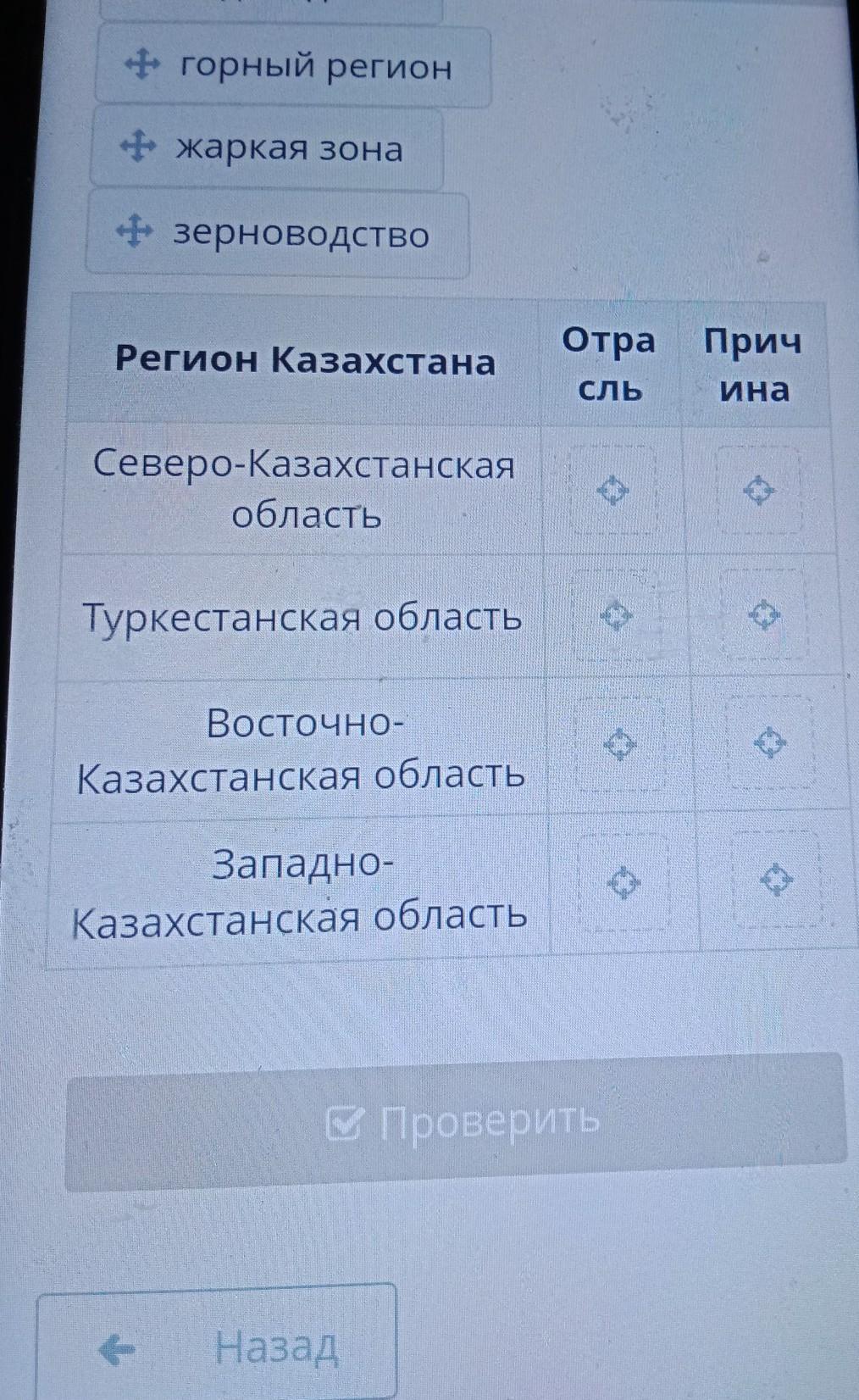 Установи соответствие между регионом, отраслью экономики и причиной её развития, заполнив таблицу. Оленеводство, пустынная зона, плодородная почва,верблюдоводство, хлопководство, садоводство, горный регион, жаркая зона, зерноводство. познание мира