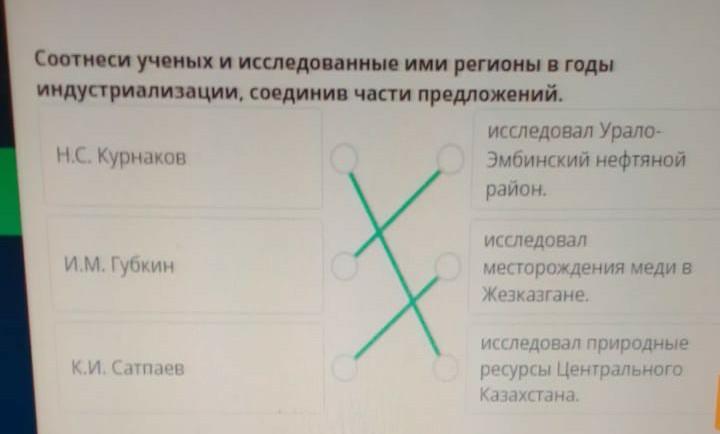 Соотнеси учёных и иследованные ими регионы в годы индустриализации,соединив части предложений.