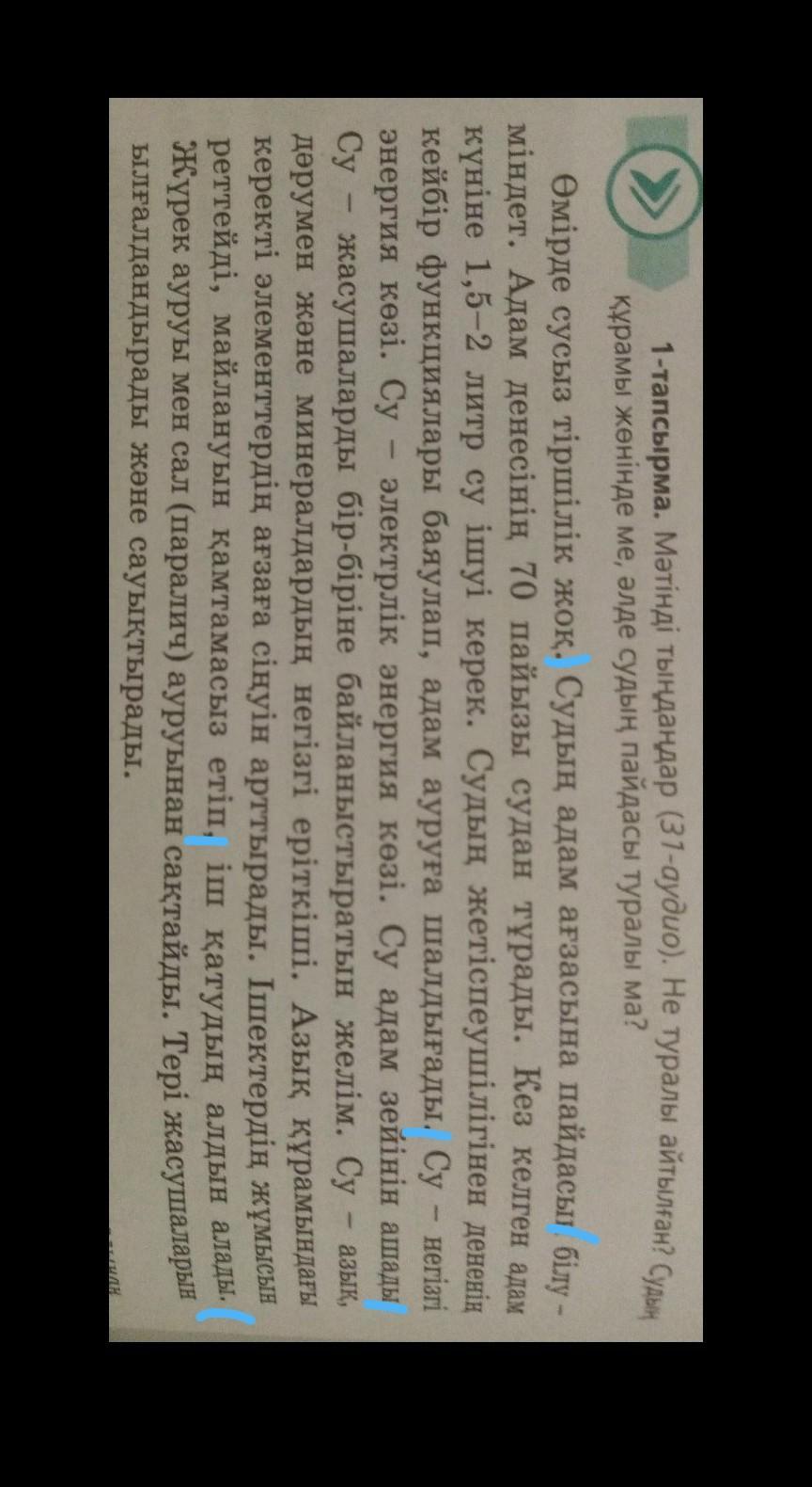 1) Мәтін не туралы : мәтін судың ПАЙДАСЫ туралы.