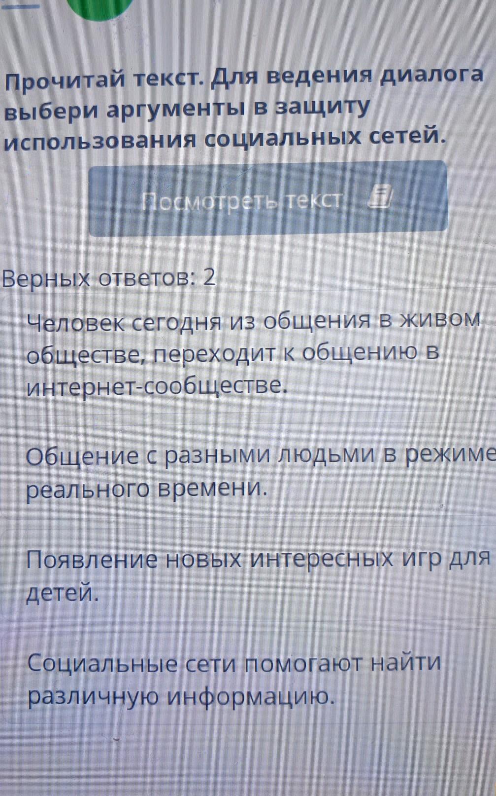 Прочитай текст для ведения для уголка выбора аргументы В защиту используя специальный детей верных ответов два человека сегодня сообщение в живом веществе переход к общению в интернет-сообщество общения с разными людьми в режиме реального времени