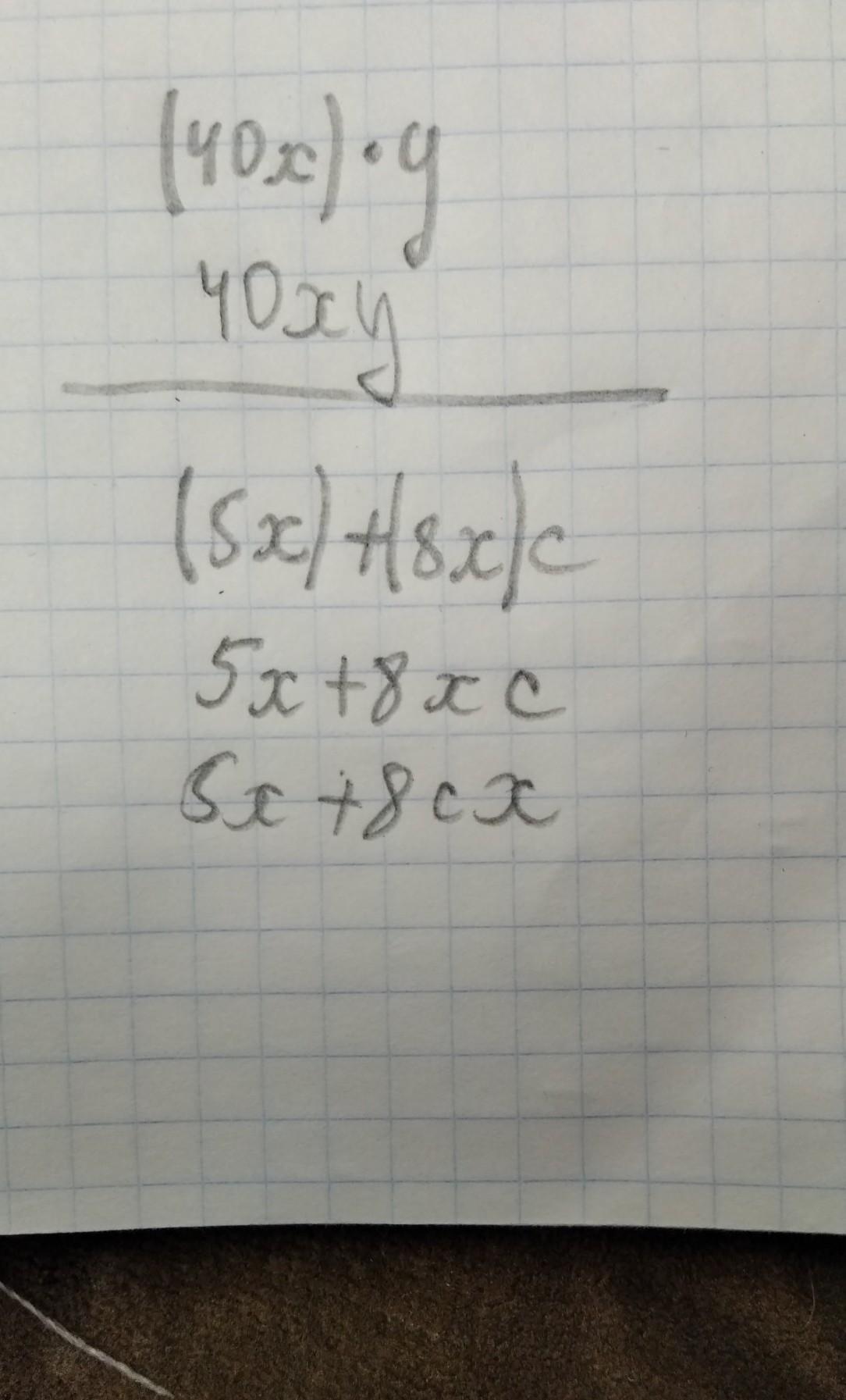 Помогите пожалуйста срочно надо. Являются ли тождественно равными выражение: (40х) ×у и (5х)+(8х) с решением пожалуйста