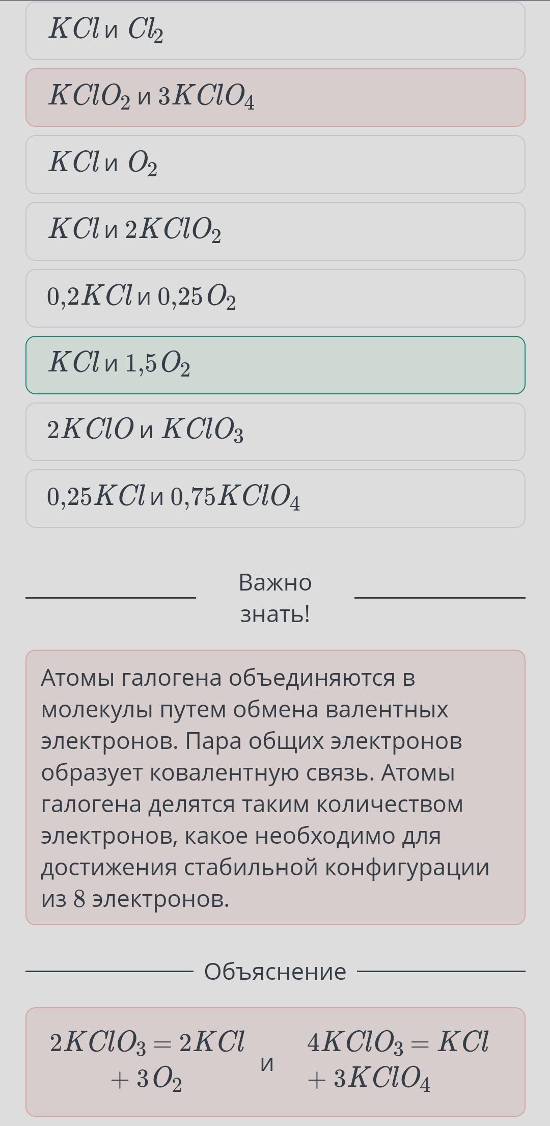 при разложения 1 моля хлората калия при различных условиях образуются ?