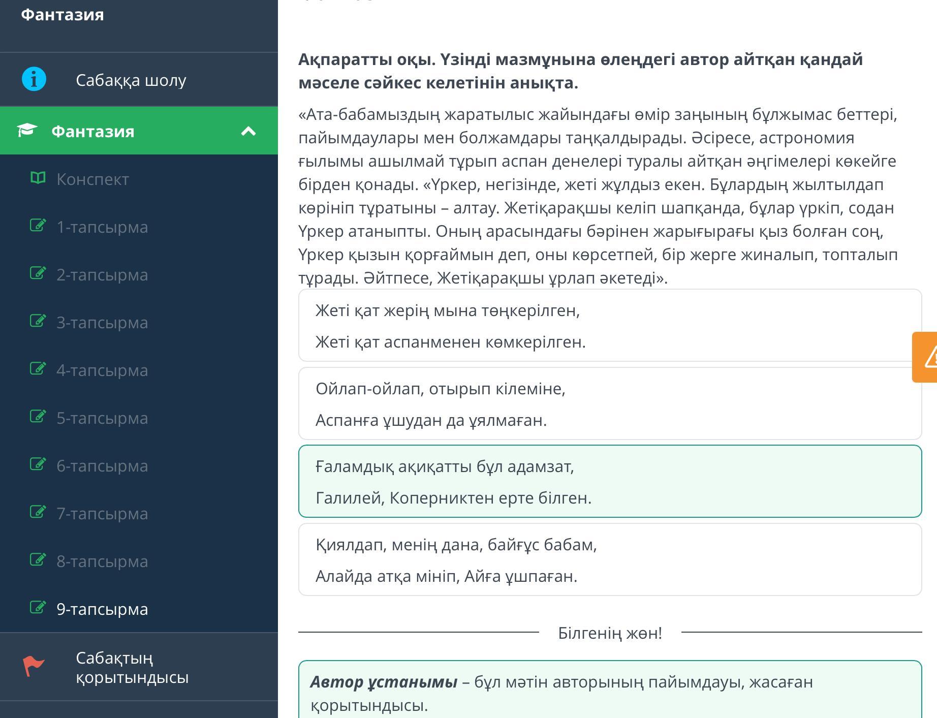 Ақпаратты оқы. Үзінді мазмұнына өлеңдегі автор айтқан қандай мәселе сәйкес келетінін анықта.