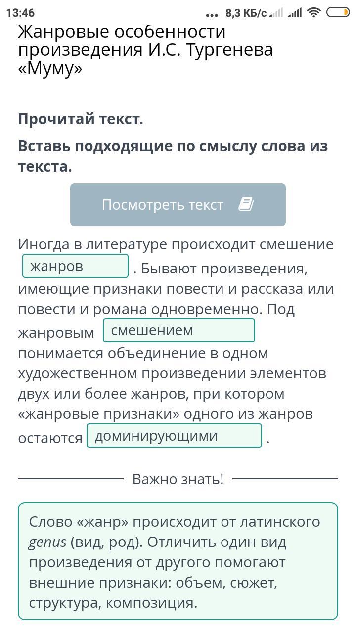 Жанровые особенности произведения И.С. Тургенева «Муму»