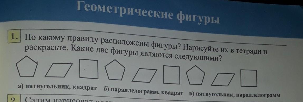 Правило: идут 1-ым пятиугольник, 2-ым параллелограмм, 3-им квадрат