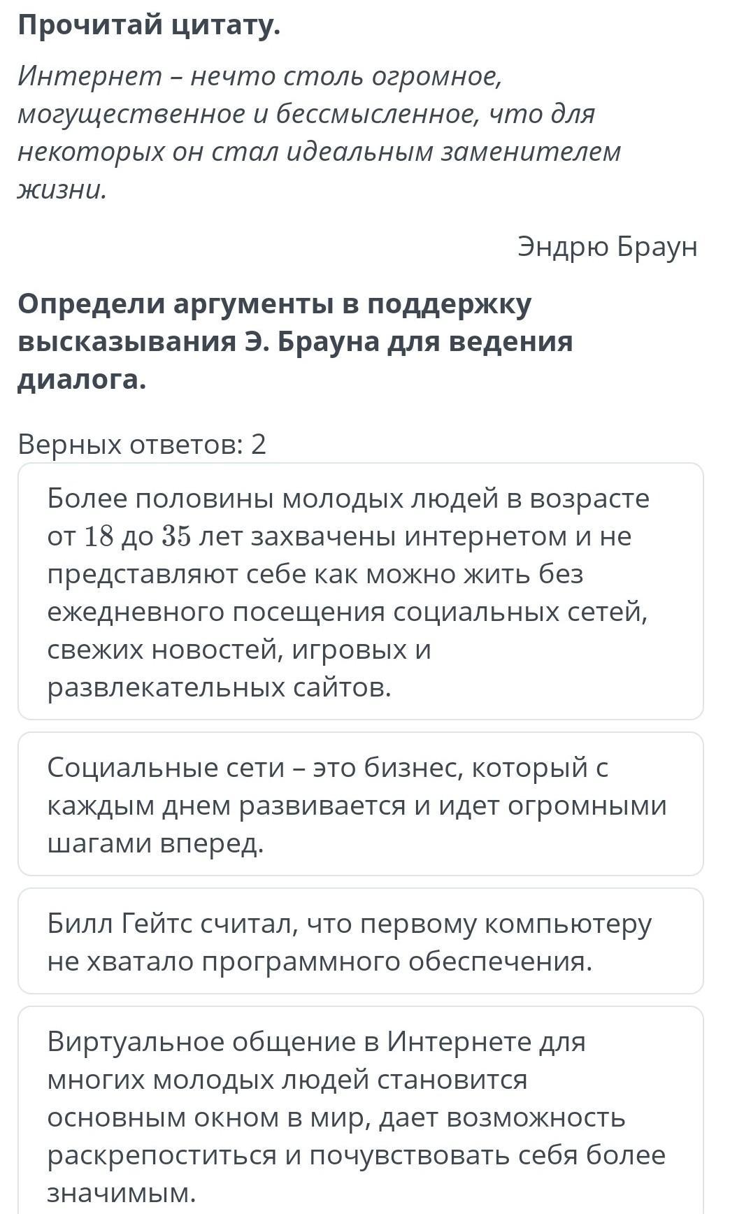 Виртуальное общение в Интернете для многих молодых людей становится основным окном в мир, дает возможность раскрепоститься и почувствовать себя более значимым. СРОЧНО НУЖНО ПОЖАЛУЙСТА
