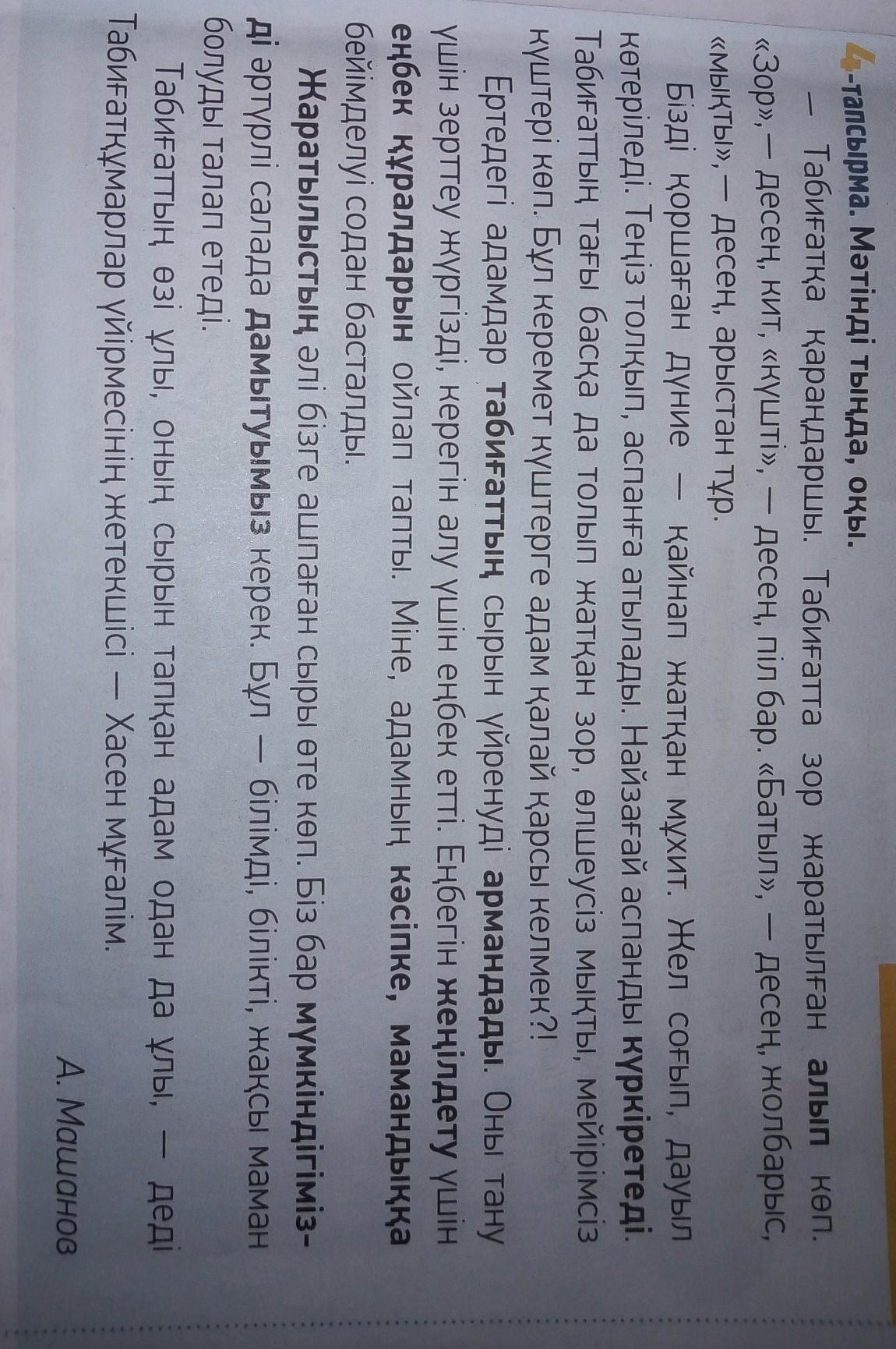 5-тапсырма. Сөздіктің көмегімен мәтіндегі қою қаріппен жазылған сөздердің мағынасын анықта. Жаз.