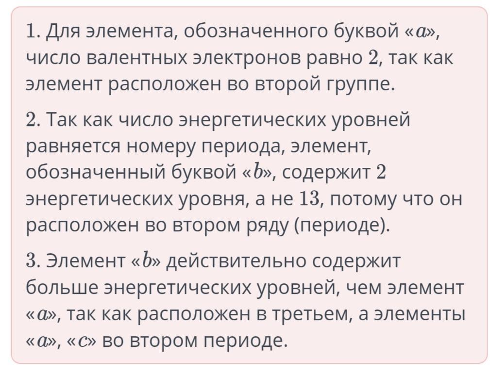 3. Число энергетических уровней элемента b больше, чем у элемента a, однако число энергетических уровней элементов a и c равны