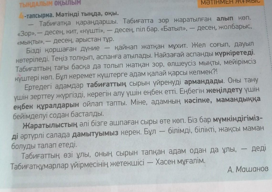 ОТВЕТИТЬ НА ВОПРОСЫ. тапсырма. Мәтін бойынша сұрақтарға жауап бер.