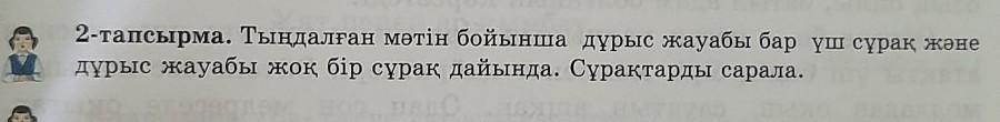 2-тапсырма. Тыңдалған мәтін бойынша дұрыс жауабы бар үш сұрақ және