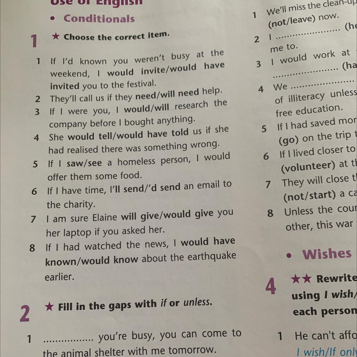 1 If I'd known you weren't busy at the weekend, I would have invited you to the festival.