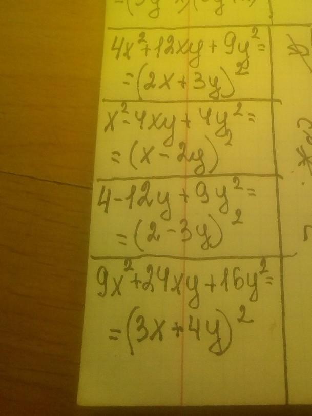 1)4x² + 12xy + 9y² ⇒ (2x + 3y)²