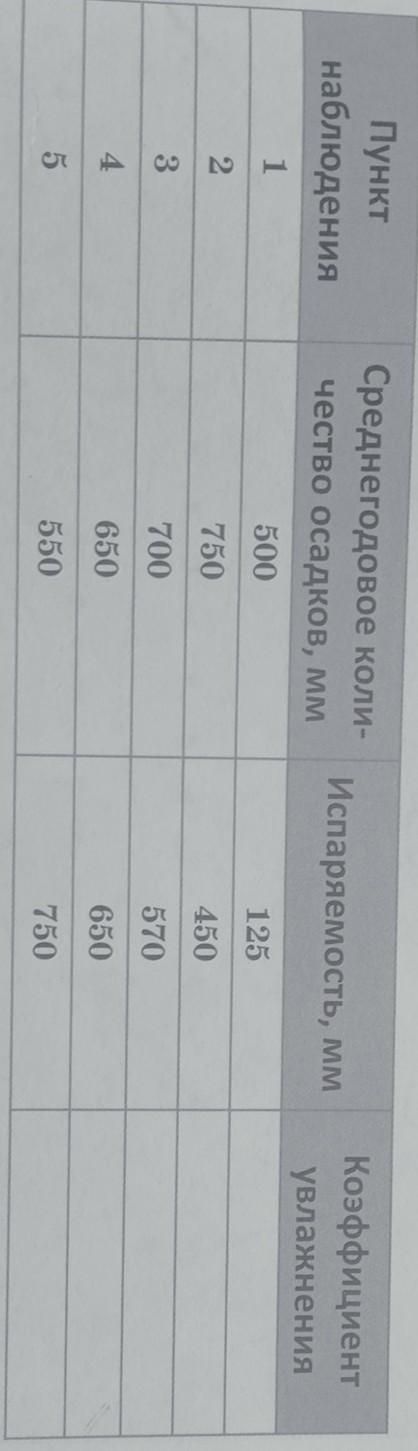 Рассчитайте по формуле Коэффициент увлажнения каждого пункта и заполните таблицу