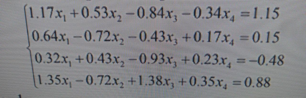 Решить систему линейных алгебраических уравнений методом Гаусса: