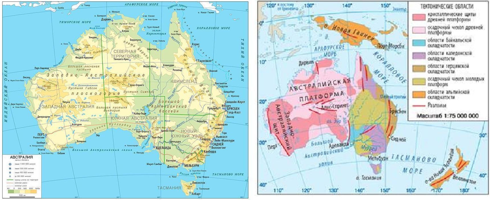 на конкретных примерах Покажите связь между Расположение форм рельефа на материке и его внутренней Строение (Австралия)