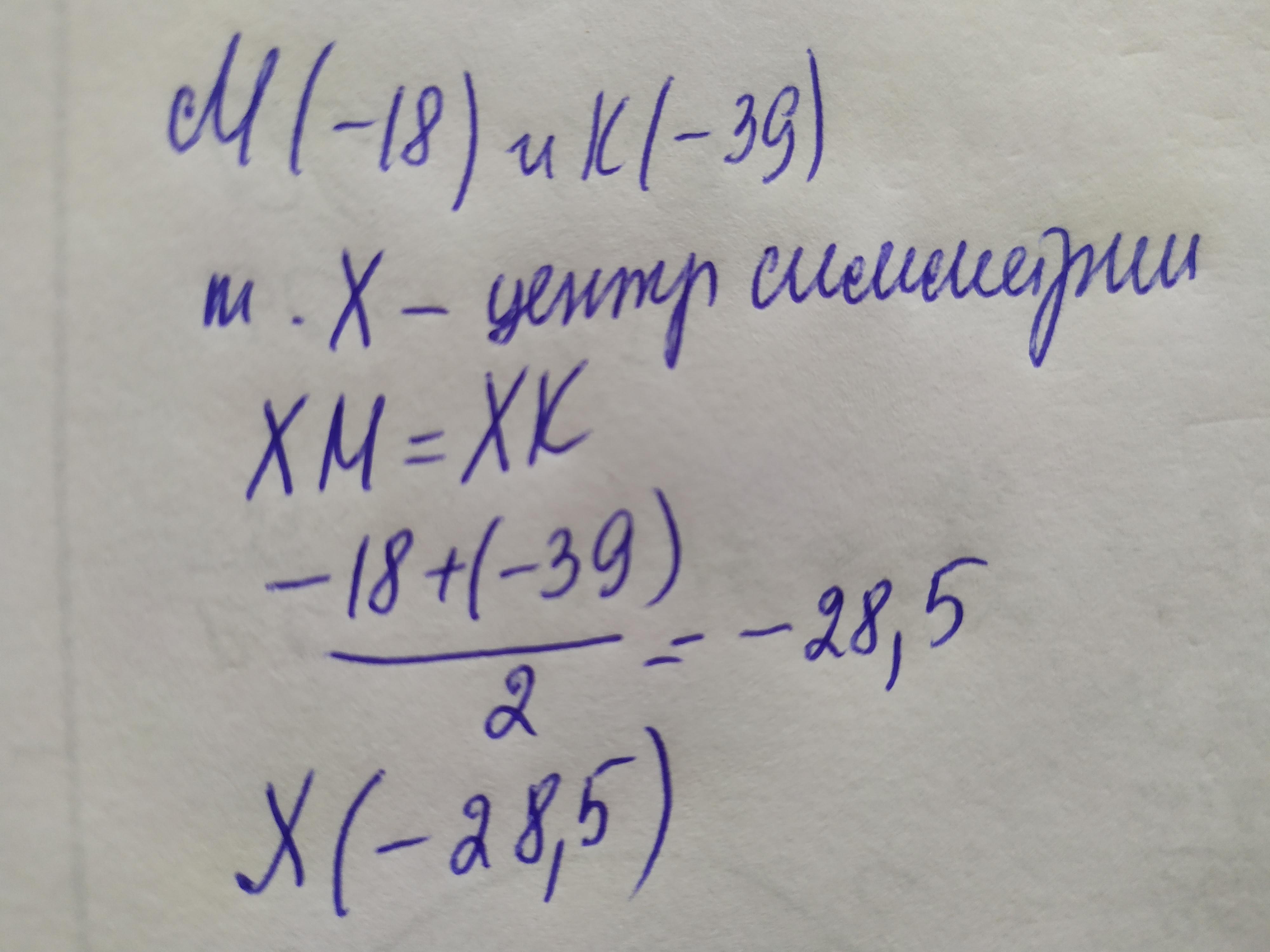 Известно, что точки M(−18) и K(−39) симметричны.