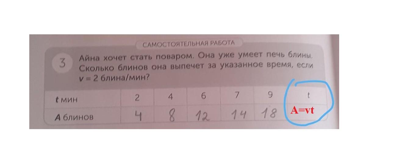 Количество блинов А за время t равно произведению скорости на затраченное время А=vt