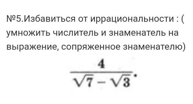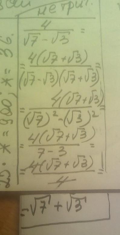 4/(√7-√3)=4(√7+√3)/(√7-√3)(√7+√3)=4(√7+√3)/7-3=4(√7+√3)/4=√7+√3