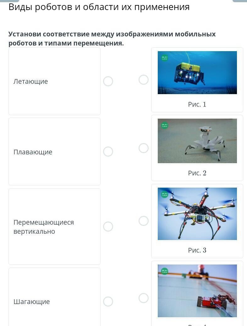 плавающие- рис 1 летающие- рис 3 помещающийся вертикально -рис 4 шагающая -рис 2