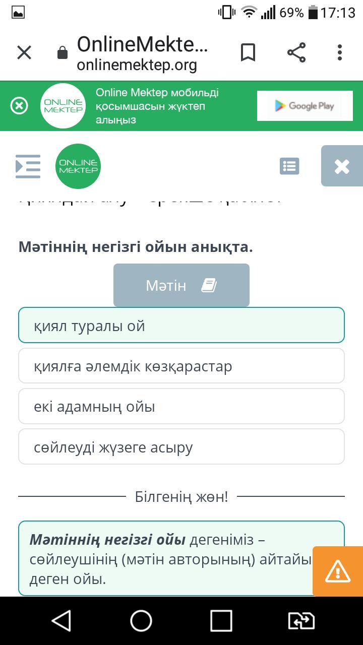 мәтіннің негізгі ойын анықта қиял туралы ой