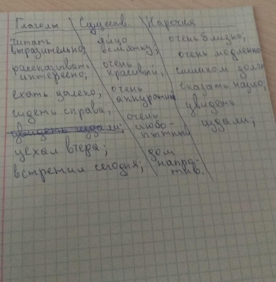 4 Вышиите в три ряда словосочетания е наречияти, относящиеся к