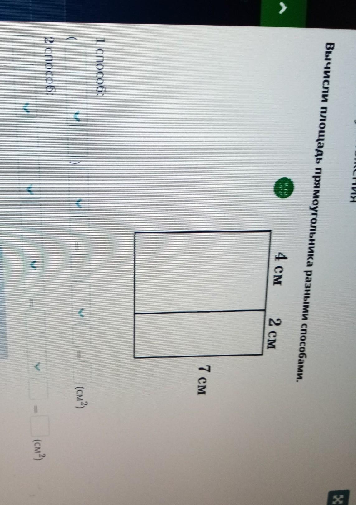 свойства умножения Вычисли Площадь прямоугольного разными способами 4см 2см первый способ второй способ
