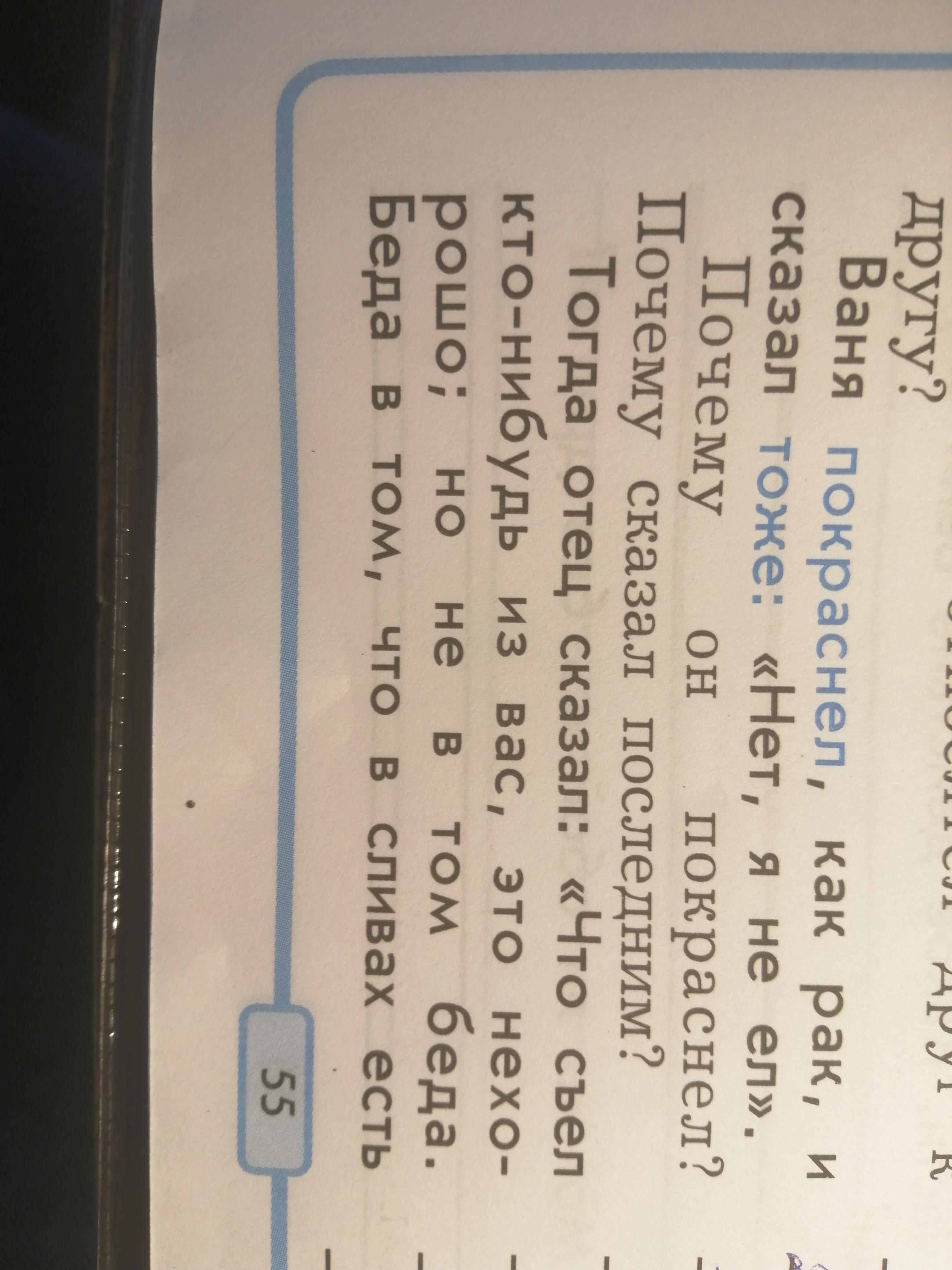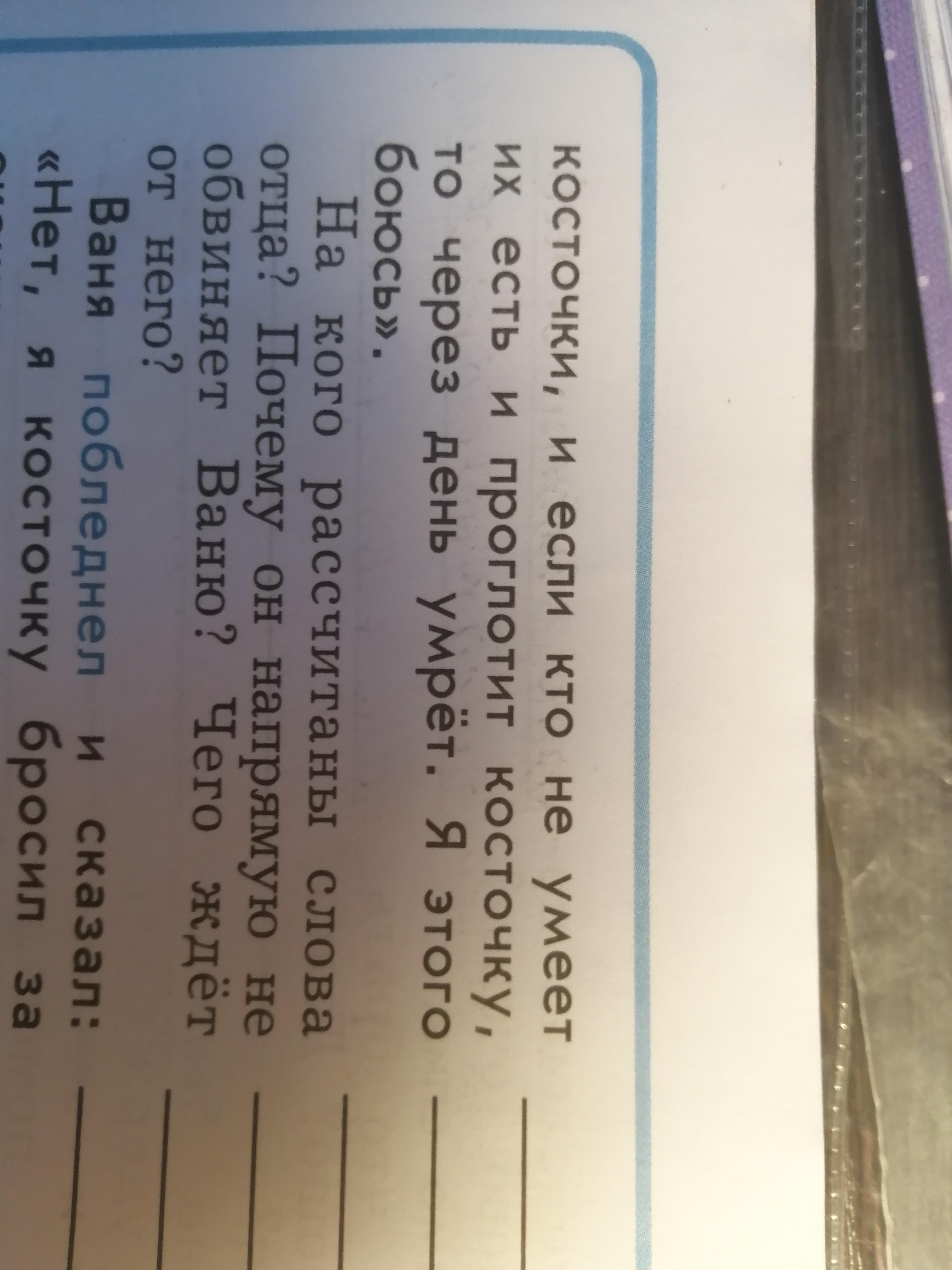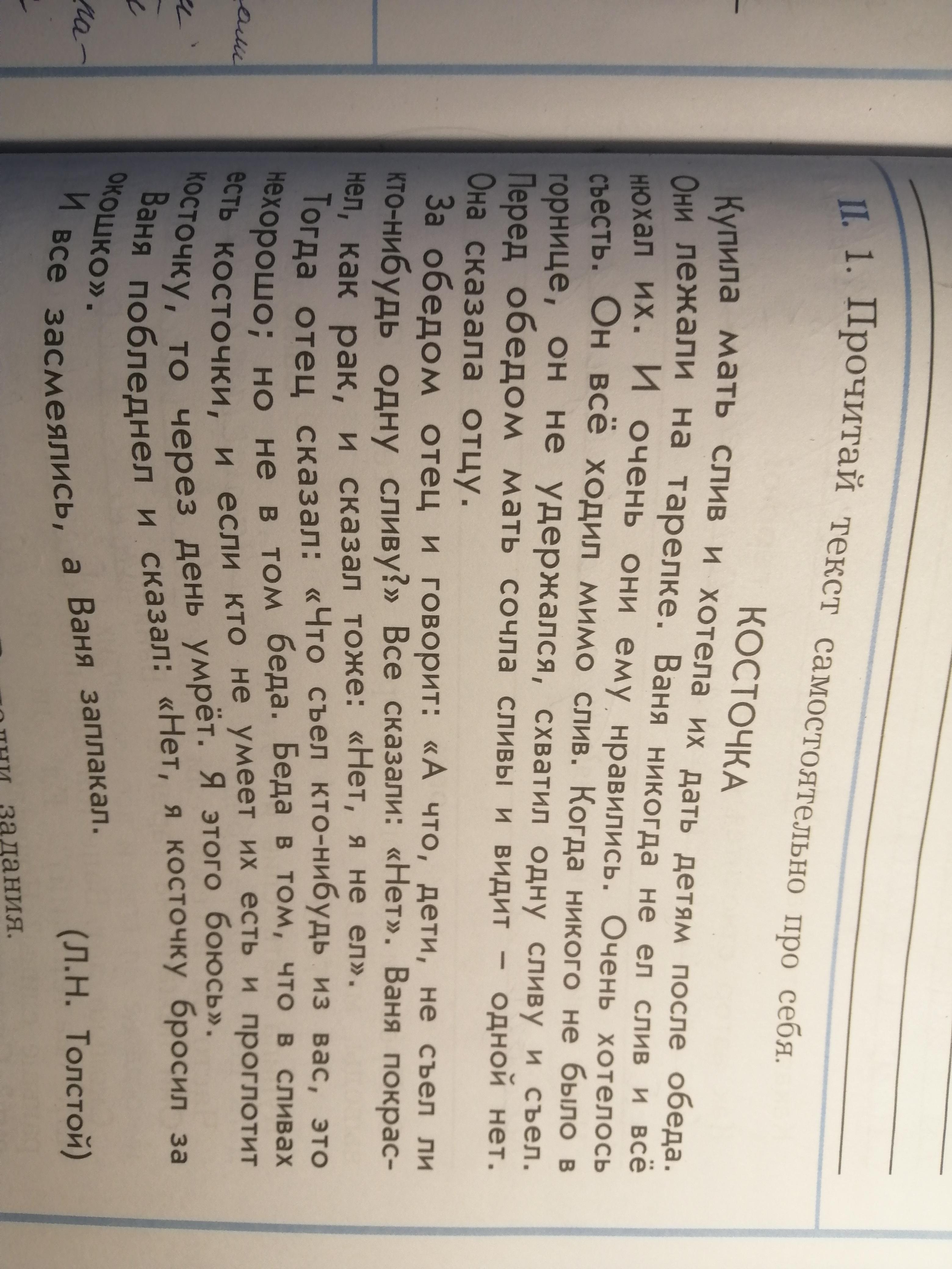 Помогите пожалуй!!! Текст косточка вопрос Тогда отец сказал:что съел кто-нибудь из вас, это нехорошо ;но не в том беда. Беда в том, что в сливах есть косточки, и если кто не умеет их есть и проглотить косточку, то через день умрёт. Я этого боюсь. Пожалуйста помогите