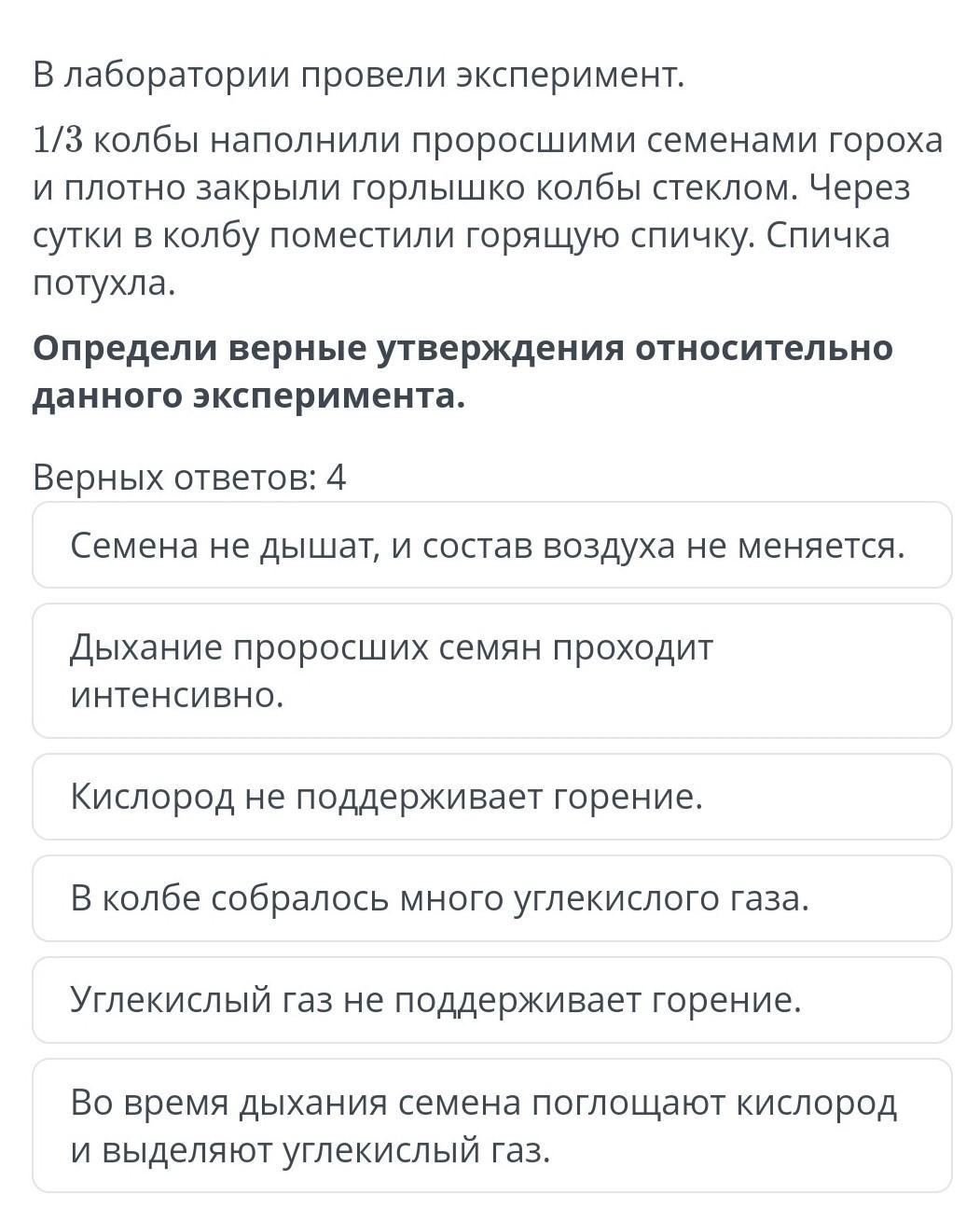 4) Во время дыхание семена поглощают кислород и выделяют углекислый газ