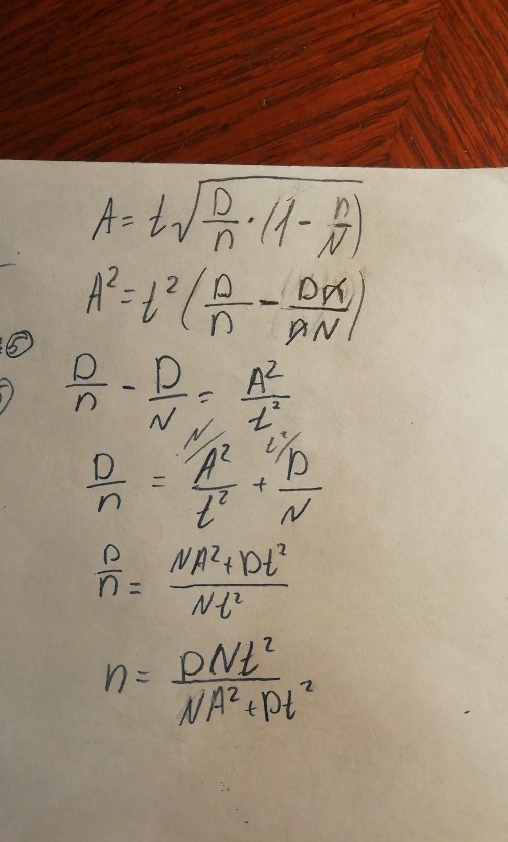 а если выражение будет (A/q)=t*sqrt((D/n)*(1-(n/N)))