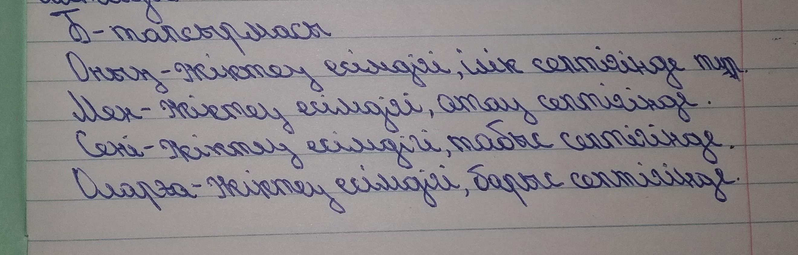 Б) Мәтіннен жіктеу есімдіктерін теріп жазып, құрамына қарай