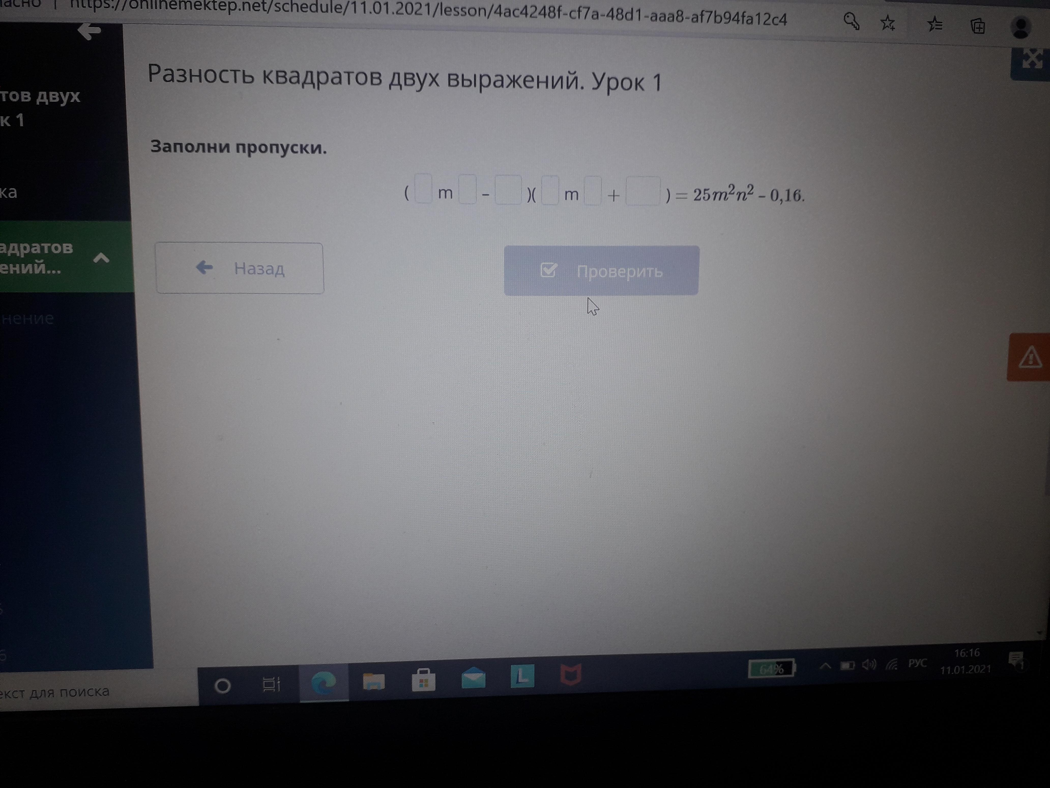 25m²n²-0.16 = (5mn-0.4)(5mn+0.4)