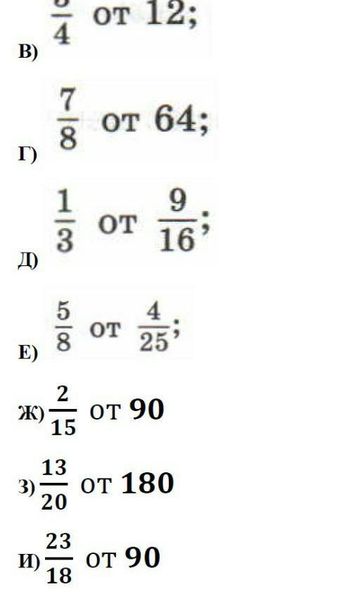 Ответ:г) 56;д)3/16;е)1/10;ж)12;з)117;и)115.