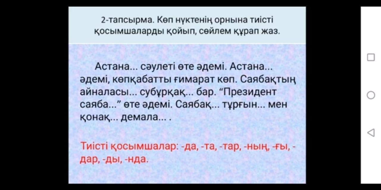 2)Астанада әдемі, көпқабатты ғимарат көп.
