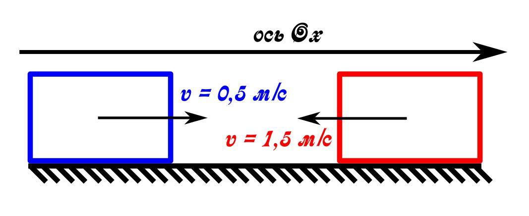 Стоит заметить, что скорости здесь в векторном виде. А, значит, скорость может быть и отрицательной, в зависимости от направления оси Ох. Направим её в сторону движения первого локомотива. Тогда v₂ = -1,5 м/с